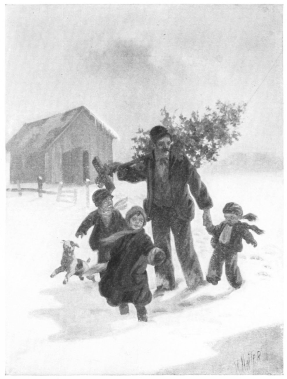 | We go nen to the old woodshed— All bundled up, through the deep snow— "An' snowin' yet, jee-rooshy-O!" Uncle he said, an' he'p us wade |