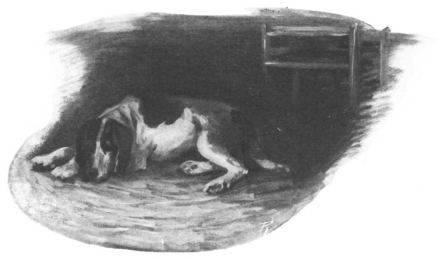 | Like Trip, an' whimpers, it's a sign He'll ketch eight rabbits—mayby nine— Afore his fleas'll wake him—nen He'll bite hisse'f to sleep again |