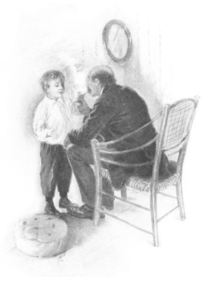 | We'll all be hid where we can see!" Nen he look up, an' he see Ma An' say, "It's ist too bad their Pa Can't be here, so's to see the fun |