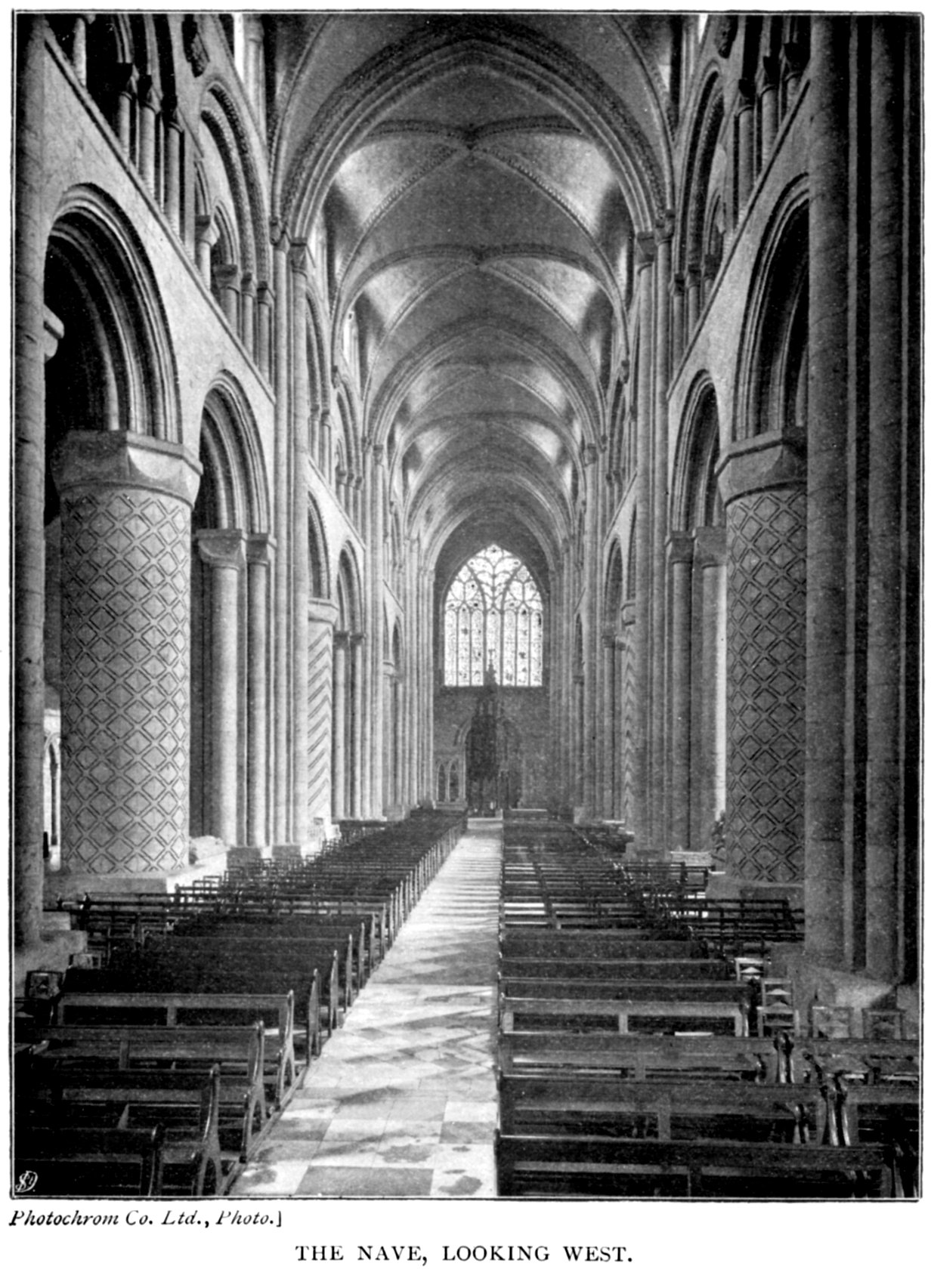 As much as possible of this brief description of Durham is from the personal acquaintance of the writer with the building. Yet many authorities have, of necessity, been consulted in its preparation, notably a pamphlet by the Rev. Canon W. Greenwell, and the "County of Durham," by J.R. Boyle, F.S.A. Thanks are also due to the authorities of the Cathedral for having freely given permission to make drawings and measurements, and to the late Mr Weatherall, chief verger, for his kindly assistance and information.