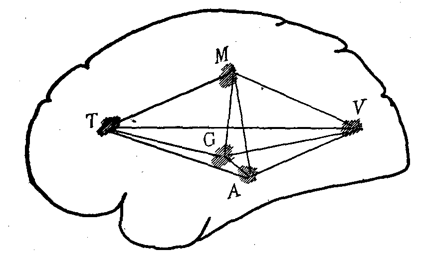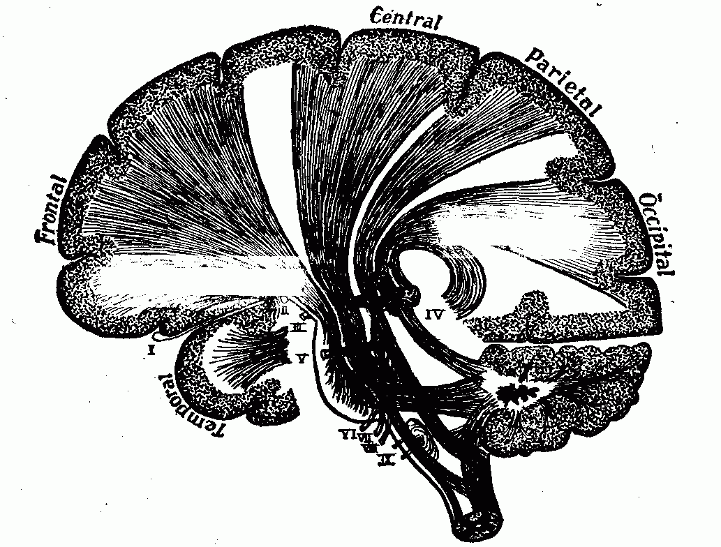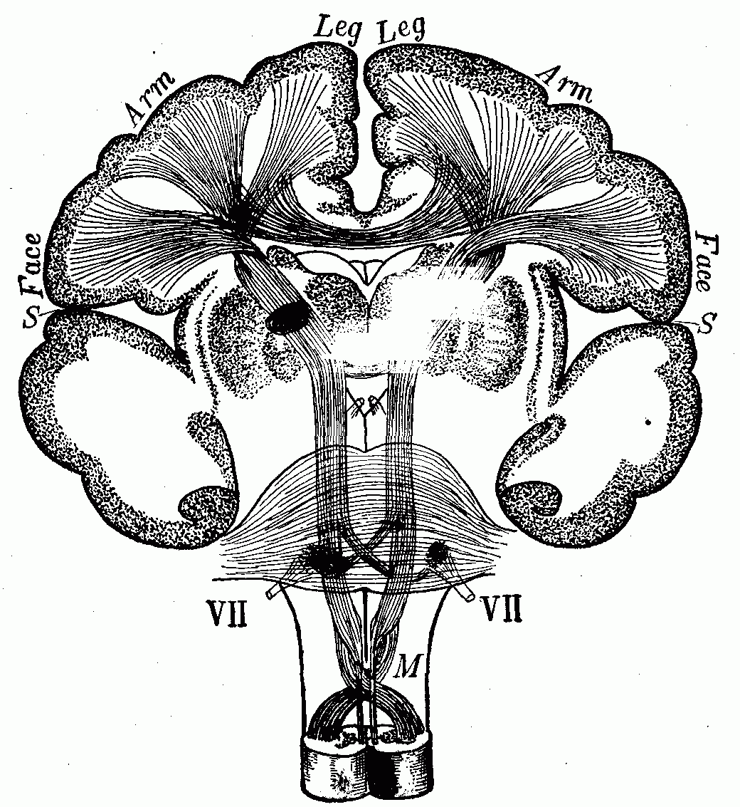 Consciousness Works through the Nervous System.—Later13 science has taught that the mind resides in and works through the nervous system, which has its central office in the brain. And the reason why I seem to be in every part of my body is because the nervous system extends to every part, carrying messages of sight or sound or touch to the brain, and bearing in return orders for movements, which set the feet a-dancing or the fingers a-tingling. But more of this later.