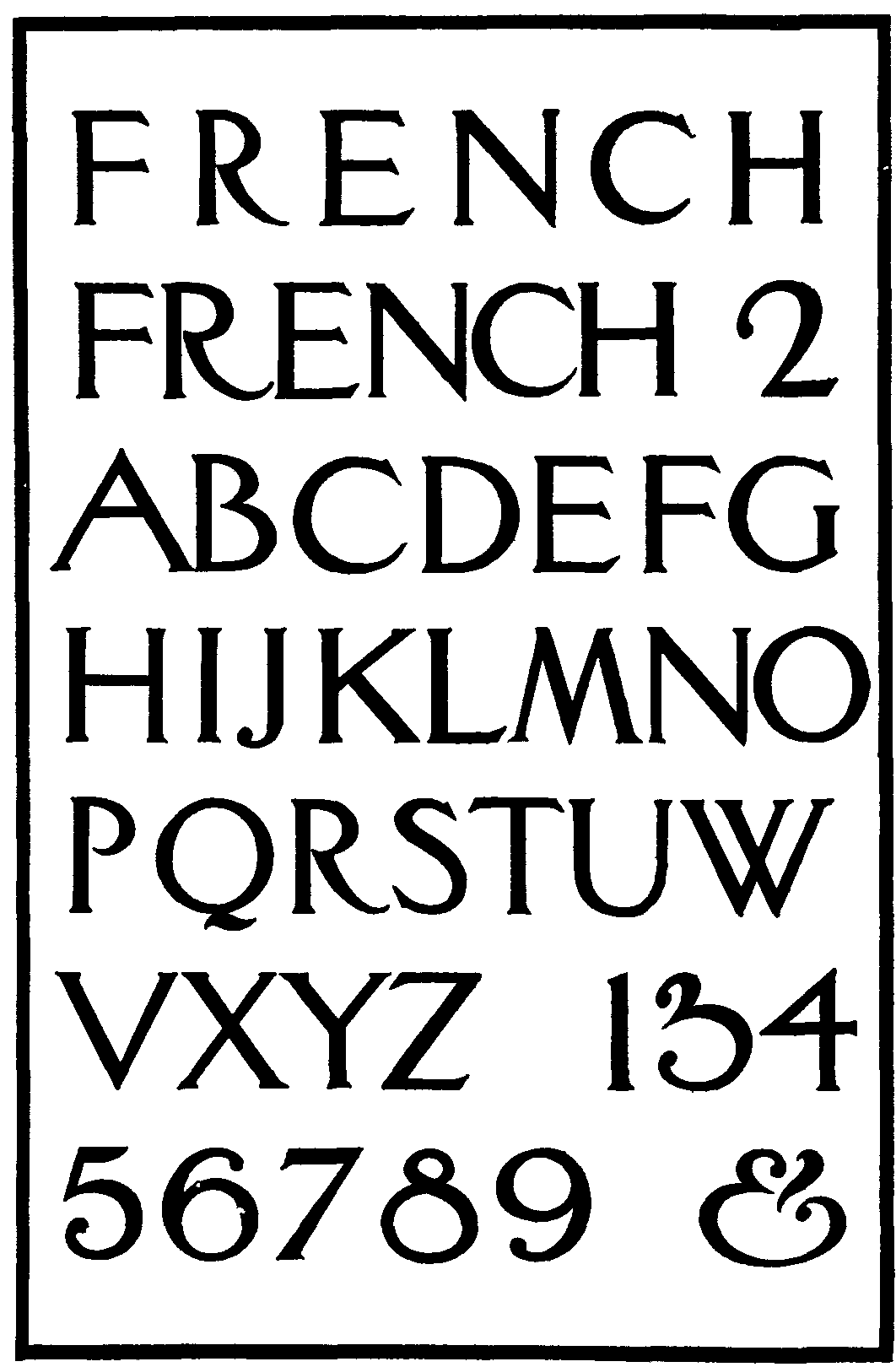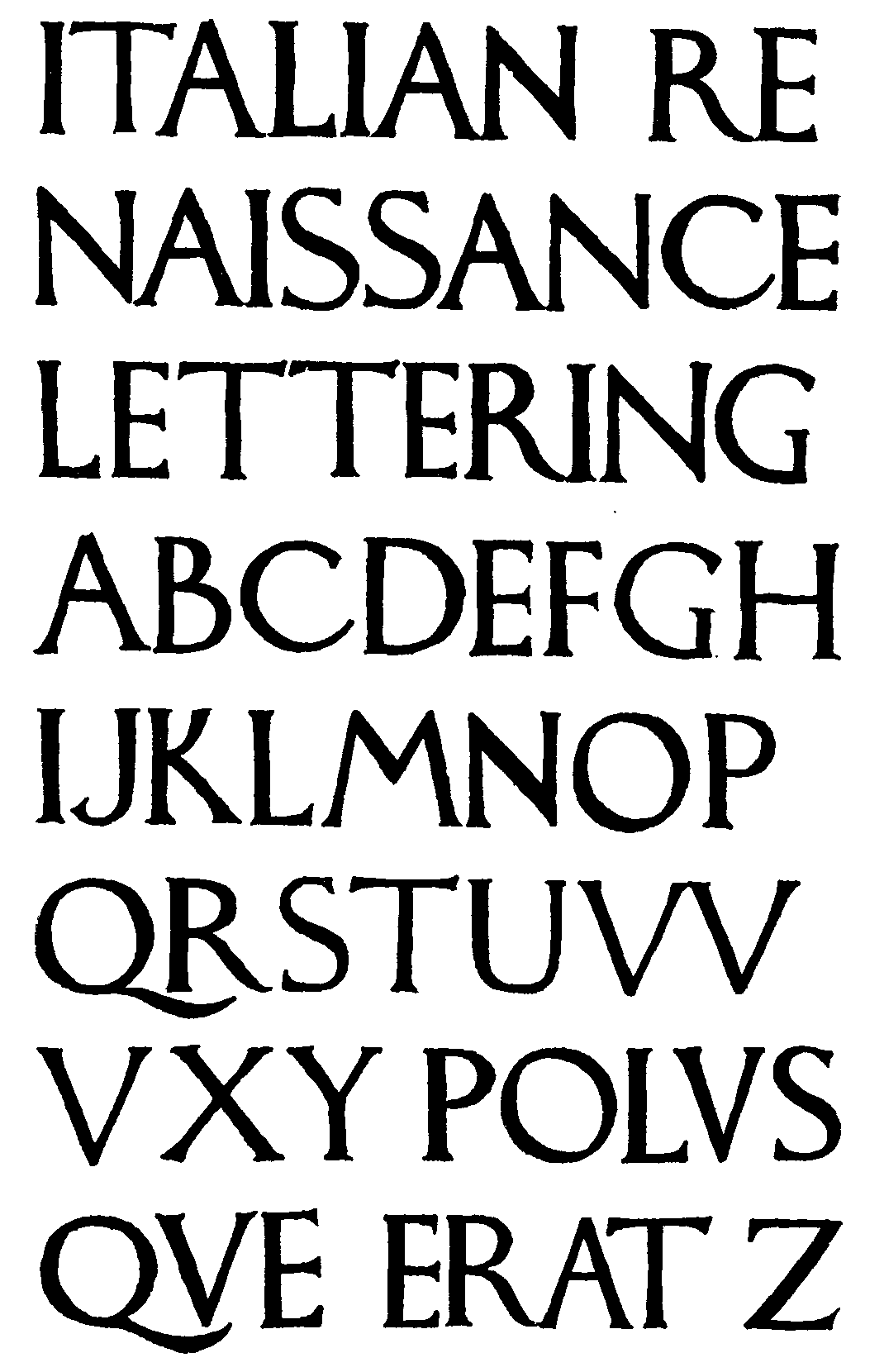 The alphabets illustrated, while primarily intended to exhibit the letter shapes, have in most cases been so arranged as to show also how the letters compose into words, except in those instances where they are intended to be used only as initials. The application of classic and medieval letters to modern usages has been, as far as possible, suggested by showing modern designs in which similar forms are employed.