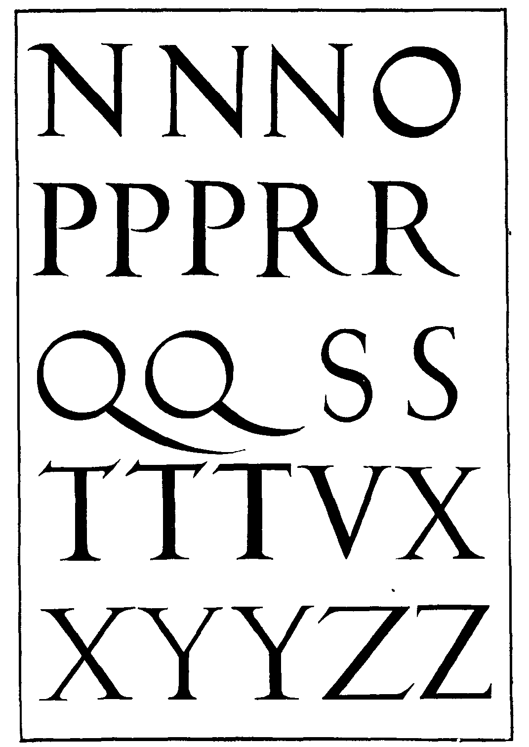 37 and 38 German Renaissance Capitals. By Albrecht Dürer. Adapted from 'Underweyssung der messung, mit dem zirckel, ũn richtscheyt, in Linien, etc.' (Nuremberg, 1525)
