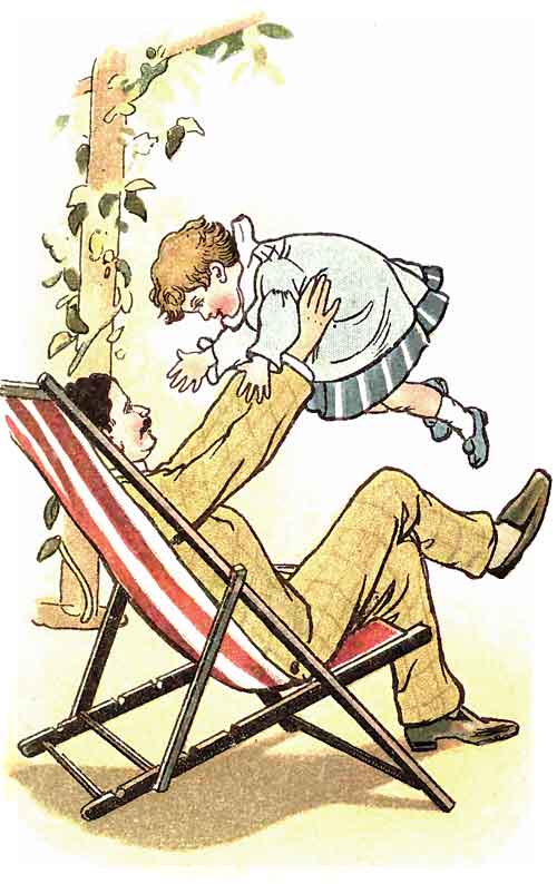 hen the Ayah returned to the verandah with Bab-ba’s Noah’s Ark, and she saw his little empty chair and Mioux-Mioux asleep in the sun, she grew alarmed and ran about calling Bab-ba’s name, and wringing her hands, and Bab-ba’s Mother came out, and his Father, and they and all the servants hunted about in the garden for a very long while, but could not find any trace of him, and Mioux-Mioux woke up and wondered what all the commotion was about, and Wooff-Wooff came back without the rabbit and wondered too.