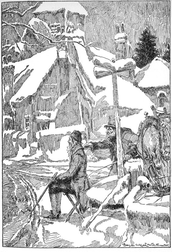 Dickens's greatest gift was characterization, and no English writer, save Shakespeare, has drawn so many and so varied characters. It would be as absurd to interpret all of these as caricatures as to deny Dickens his great and varied powers of creation. Dickens exaggerated many of his comic and satirical characters, as was his right, for caricature and satire are very closely related, while exaggeration is the very essence of comedy. But there remains a host of characters marked by humour and pathos. Yet the pictorial presentation of Dickens's characters has ever tended toward the grotesque. The interpretations in this volume aim to eliminate the grosser phases of the caricature in favour of the more human. If the interpretations seem novel, if Scrooge be not as he has been pictured, it is because a more human Scrooge was desired—a Scrooge not wholly bad, a Scrooge of a better heart, a Scrooge to whom the resurrection described in this story was possible. It has been the illustrator's whole aim to make these people live in some form more fully consistent with their types.