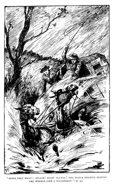 They passed out of the grounds across a lane thickly shaded by trees, whose foliage was beginning to change its summer hue for the gorgeous varieties of autumnal colouring. Then they followed a winding path that skirted a wide sea of wheat, which rose and fell in rustling waves, disclosing now and again bright dazzling gleams of the scarlet poppy. At the end of this field was a stile leading into the highroad to Hopeworth. Here they paused, and were just about to part, when the sound of a horse’s feet in rapid but very irregular motion arrested their attention. The animal and his rider soon came into view, the latter evidently keeping his seat with difficulty. There was plainly a struggle of some kind going on between the brute and the rational being who was mounted on him, and while drawing the reins tight with one hand, was belabouring the poor creature about the head most unmercifully with a heavy hunting whip. The horse not appreciating the advantages of this treatment at the hands of its intellectual owner, was resisting by a shuffling, remonstrating sort of gallop; while his rider, who was evidently a practised horseman, seemed to stick to his saddle by a kind of instinct, having little else to guide him, for his hat was completely shaken down over his eyes.