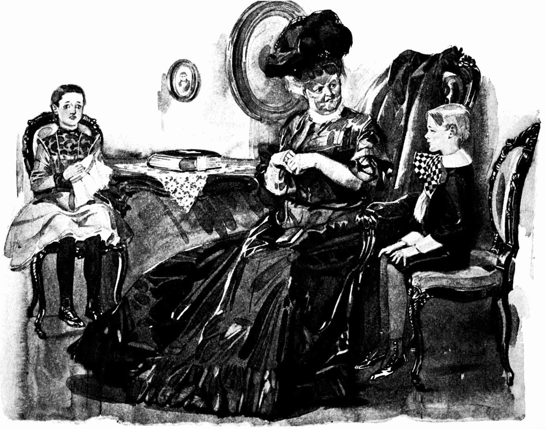 [Pg. 12]She looked at Aunt Anne. That severe lady had dropped her book and, seized by the contagion, was shaking with silent laughter.