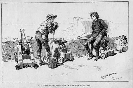 “He is excited,” I said in a low voice, for across the passage I could hear him walking up and down in his own room; and that kept on till I dropped off asleep, and dreamed that the French had landed with four large boats and a great pole which they lowered down into the sea. Then they seemed to have got me fastened to the rope that ran through the wheel-block at the head, and they had fastened a pig of lead on to my chest, which pressed upon me as they hauled me up out of the boat, and then let go.
