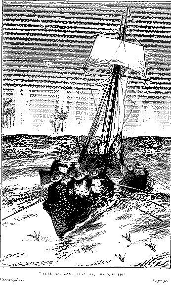 By daylight we were close up to Aurora Island. The inhabitants had seen our boat approaching, and had gathered on the beach to receive us. They probably thought that our vessel was not far off, round a point to the westward.