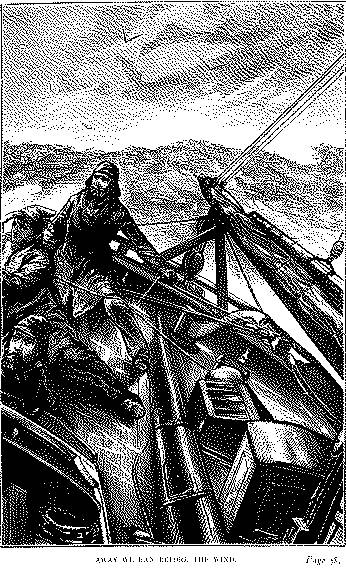 “We are not likely to get it yet, at all events, from the look of the sky,” said Harry. “We’ll rig the awning and persuade Mary and Fanny to come on deck. They’ll be better here than in the close cabin.” Just as he spoke Nat Amiel, his young brother-in-law, appeared at the companion-hatch.