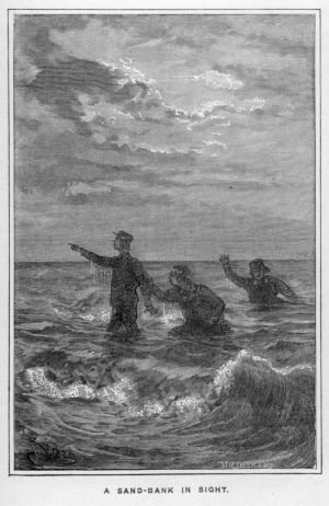 “We will take our sail to pieces, and resume our shirts and handkerchiefs,” said Boxall calmly. “If the tide is at present at its height, the rock will be dry shortly, and we can remain and stretch our legs till we ascertain how far we are off the coast.”