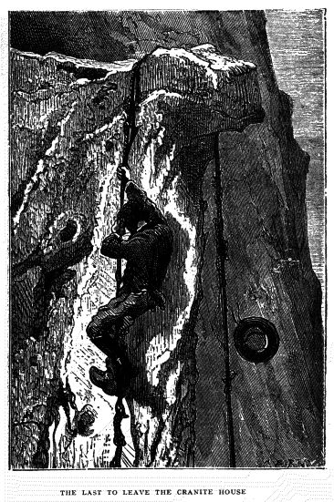 It was all that remained of the structure of Granite House! The wall had fallen headlong and been then shattered to fragments, and a few of the rocks of the large room were piled one above another to form this point. All around had disappeared in the abyss; the inferior cone of Mount Franklin, rent asunder by the explosion; the lava jaws of Shark Gulf, the plateau of Prospect Heights, Safety Islet, the granite rocks of Port Balloon, the basalts of Dakkar Grotto, the long Serpentine Peninsula, so distant nevertheless from the centre of the eruption. All that could now be seen of Lincoln Island was the narrow rock which now served as a refuge to the six colonists and their dog Top.