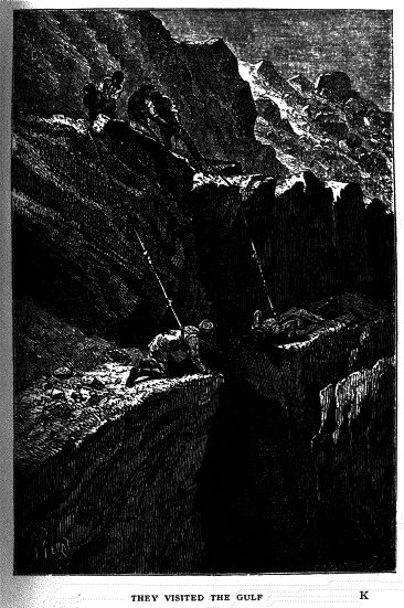 During the first week of March appearances again became menacing. Thousands of threads like glass, formed of fluid lava, fell like rain upon the island. The crater was again boiling with lava which overflowed the back of the volcano. The torrent flowed along the surface of the hardened tufa, and destroyed the few meagre skeletons of trees which had withstood the first eruption. The stream flowing this time towards the south-west shore of Lake Grant, stretched beyond Creek Glycerine, and invaded the plateau of Prospect Heights. This last blow to the work of the colonists was terrible. The mill, the buildings of the inner court, the stables, were all destroyed. The affrighted poultry fled in all directions. Top and Jup showed signs of the greatest alarm, as if their instinct warned them of an impending catastrophe. A large number of the animals of the island had perished in the first eruption. Those which survived found no refuge but Tadorn Marsh, save a few to which the plateau of Prospect Heights afforded an asylum. But even this last retreat was now closed to them, and the lava-torrent, flowing over the edge of the granite wall, began to pour down upon the beach its cataracts of fire. The sublime horror of this spectacle passed all description. During the night it could only be compared to a Niagara of molten fluid, with its incandescent vapours above and its boiling masses below.