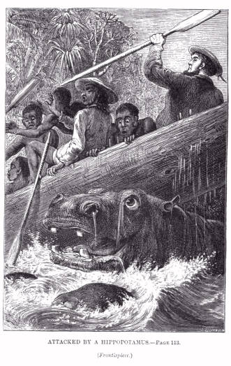The youth turned away without replying. He was sorely perplexed. Just before leaving England his father had said to him, “Harold, my boy, here’s your chance for paying a visit to the land you’ve read and talked so much about, and wished so often to travel through. I have chartered a brig, and shall send her out to Zanzibar with a cargo of beads, cotton cloth, brass wire, and such like: what say you to go as supercargo? Of course you won’t be able to follow in the steps of Livingstone or Mungo Park, but while the brig is at Zanzibar you will have an opportunity of running across the channel, the island being only a few miles from the main, and having a short run up-country to see the niggers, and perchance have a slap at a hippopotamus. I’ll line your pockets, so that you won’t lack the sinews of war, without which travel either at home or abroad is but sorry work, and I shall only expect you to give a good account of ship and cargo on your return.—Come, is it fixed?”