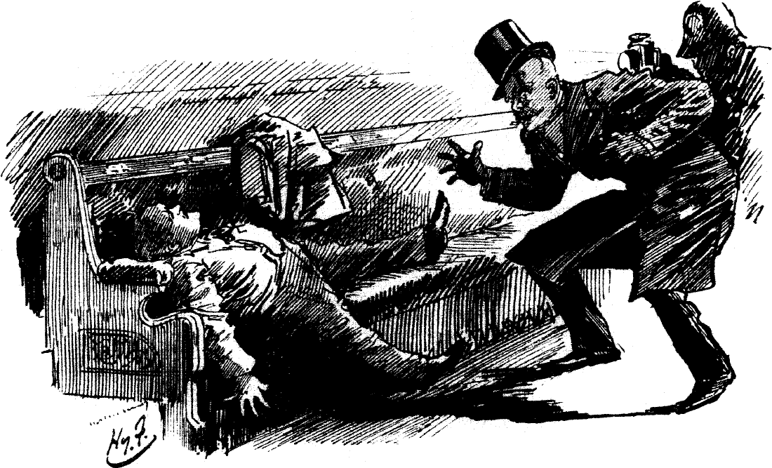 "All very well for you, Toby, dear boy," he said, responsive to my polite stare. "You come down here leisurely in afternoon, and take your seat. I've been on war-path since before daybreak. Knew the wild Irishmen meant to open proceedings of Session by appropriating our seats. Have not served in Royal Irish Fusiliers for nothing. Session opened by Royal Commission at two o'clock this afternoon. Thought if I arrived on spot at seven in morning would be in moderately good time. Here before seven: place in utter darkness; found friendly policeman with bull's-eye light; tightened my belt; cocked my pistol; requisitioned Bobby and his lantern. You should have seen us groping our way into House; Bobby first, with bull's-eye lantern professionally flashing to right and left, under seats, into dark corners. Made straight for my old corner-seat below Gangway; something white gleaming on front bench; with supple turn of wrist Bobby brought flambeau to bear upon it; found it was Tanner—Tanner, hatless, coatless, without even a waistcoat on! You might have knocked me down with much less than bayonet-prod. 'Morning, Colonel,' says he. 'Been here all night?' I gasped. 'Oh, no,' says he; 'had cup of coffee at stall by Westminster Bridge, bought a few hats in the New Cut, and, you see, I've planted them out.' So he had, by Gad! Every corner-seat taken, and he prone in Jemmy Lowther's. 'Weren't enough o' them,' Tanner said, with his sixpenny snigger; 'couldn't leave put our revered leaders, Tim Healy and O'Brien, you know. So just took off my coat, flopped it down for Tim, hung the waist-coast on a knob, and there's William O'Brien's place secured for the night. Now, if you'd like a seat, you'll find one above the Gangway; or if you want to come and sit by me, here you are. I've got a necktie, a collar, and a pair of braces to spare; if you've any particular friends in your mind, why, we'll get seats for them.' No knowing what a fellow like Tanner would do in these circumstances. Even his trowsers not sacred. So made best of bad job, and here I am. At least, better off than Jemmy Lowther, evicted without compensation for disturbance."
