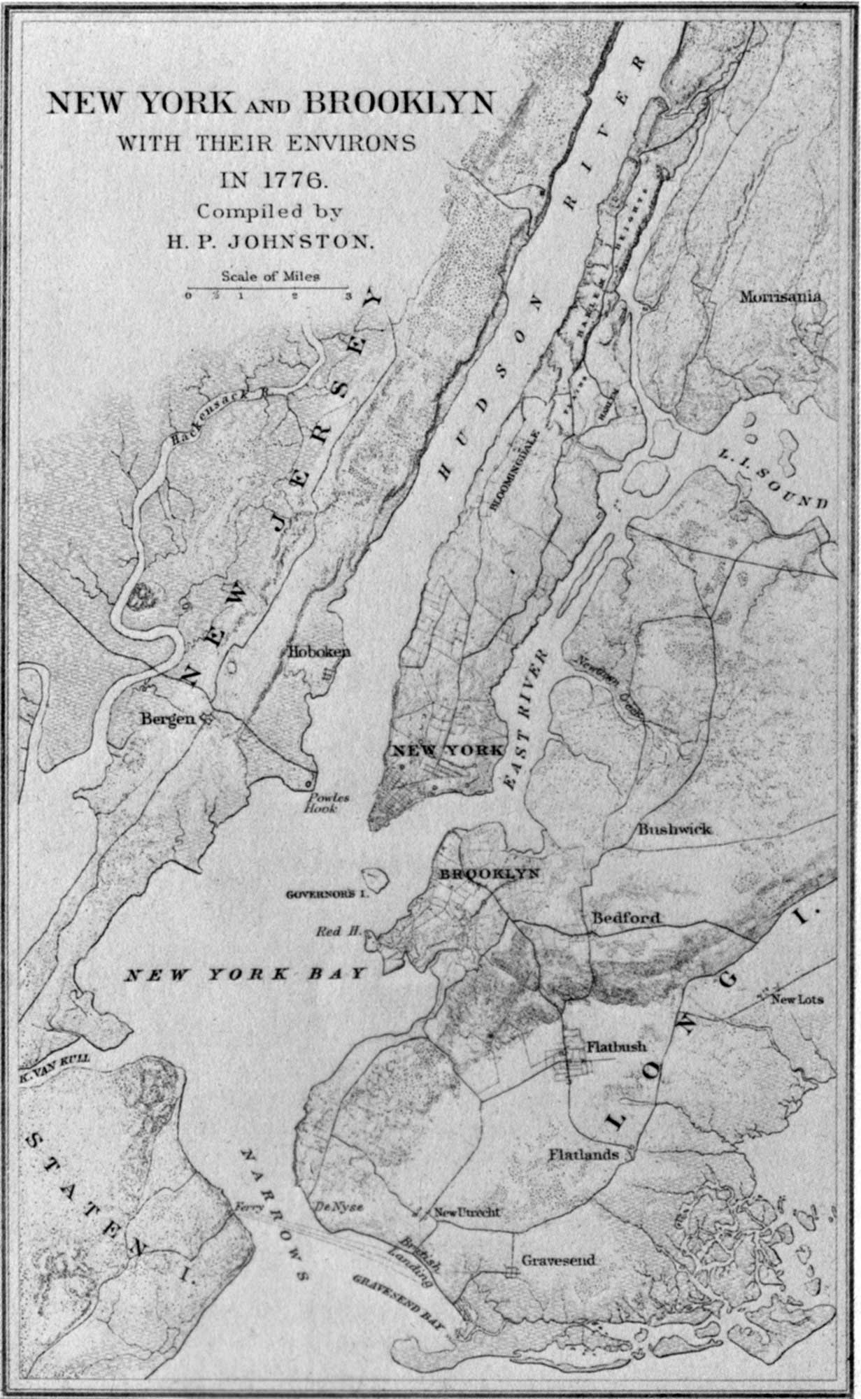 The site now occupied by the two cities of New York and Brooklyn, and over which they continue to spread, is pre-eminently "Revolutionary soil." Very few of our historic places are more closely associated with the actual scenes of that struggle. As at Boston in 1775, so here in 1776, we had the war at our doors and all about us. In what is now the heart of Brooklyn Revolutionary soldiers lay encamped for months, and in the heat of a trying summer surrounded themselves with lines of works. What have since been converted into spots of rare beauty—Greenwood Cemetery and Prospect Park—became, with the ground in their vicinity, a battle-field. New York, which was then taking its place as the most flourishing city on the continent, was transformed by the emergency into a fortified military base. Troops quartered in Broad Street and along the North and East rivers, and on the line of Grand Street permanent camps were established. Forts, redoubts, batteries, and intrenchments encircled the town. The streets were barricaded, the roads blocked, and efforts made to obstruct the navigation of both rivers. Where we have stores[Pg iv] and warehouses, Washington fixed alarm and picket posts; and at points where costly residences stand, men fought, died, and were buried. In 1776 the cause had become general; soldiers gathered here from ten of the original thirteen States, and the contest assumed serious proportions. It was here around New York and Brooklyn that the War of the Revolution began in earnest.