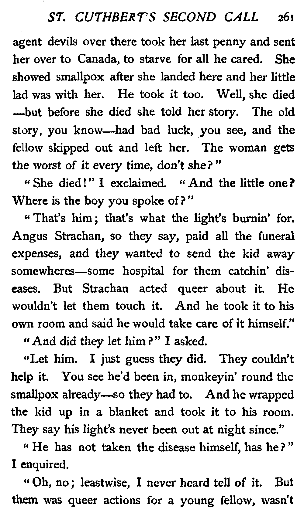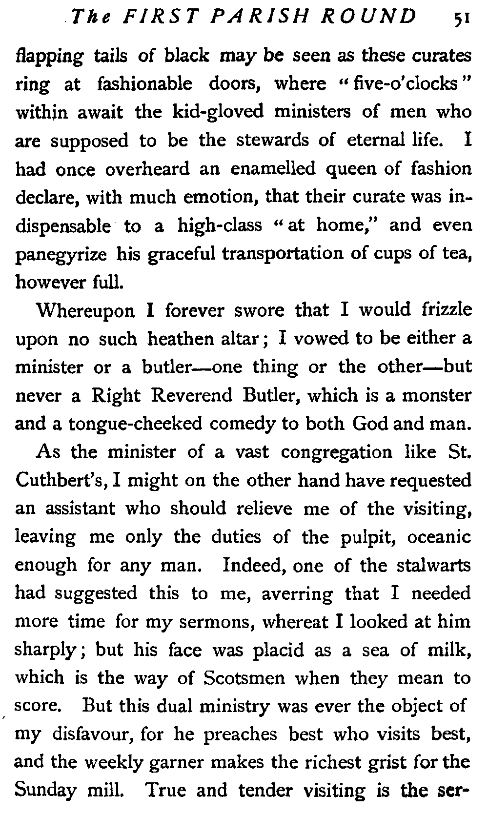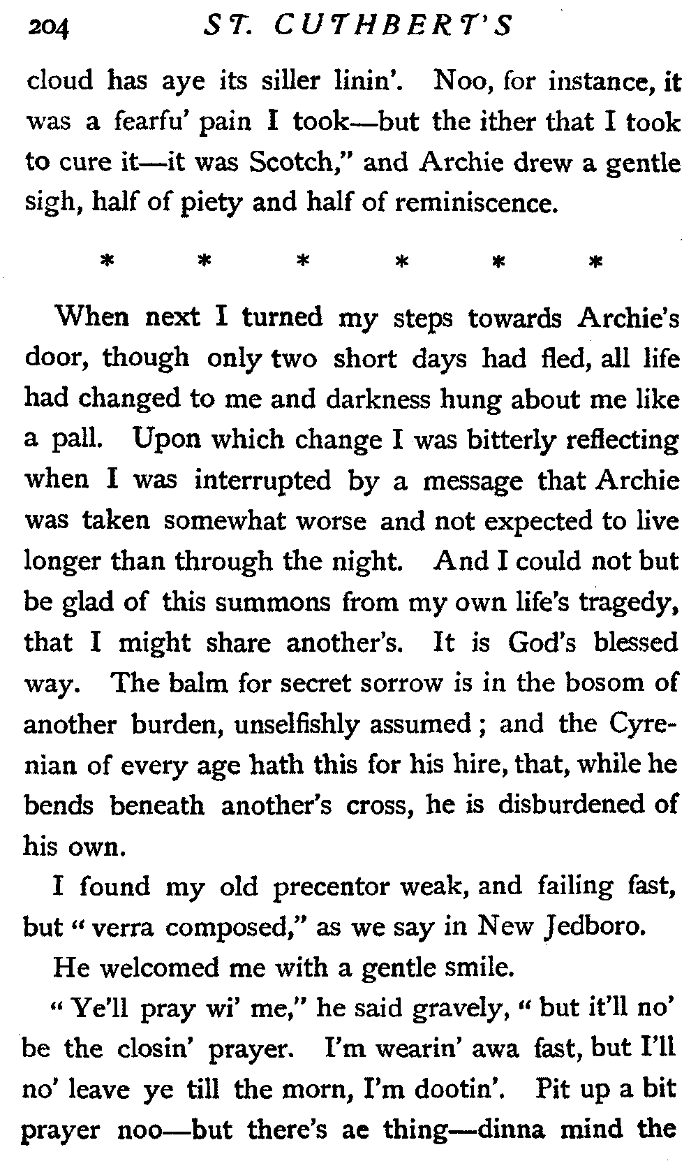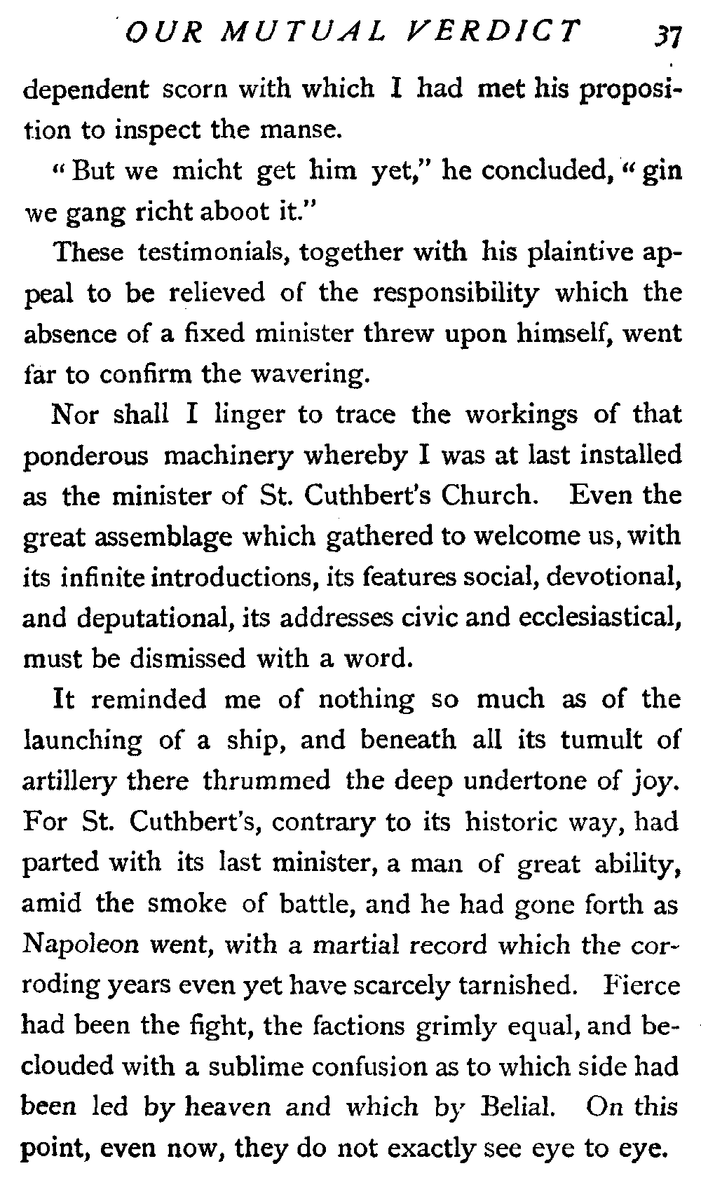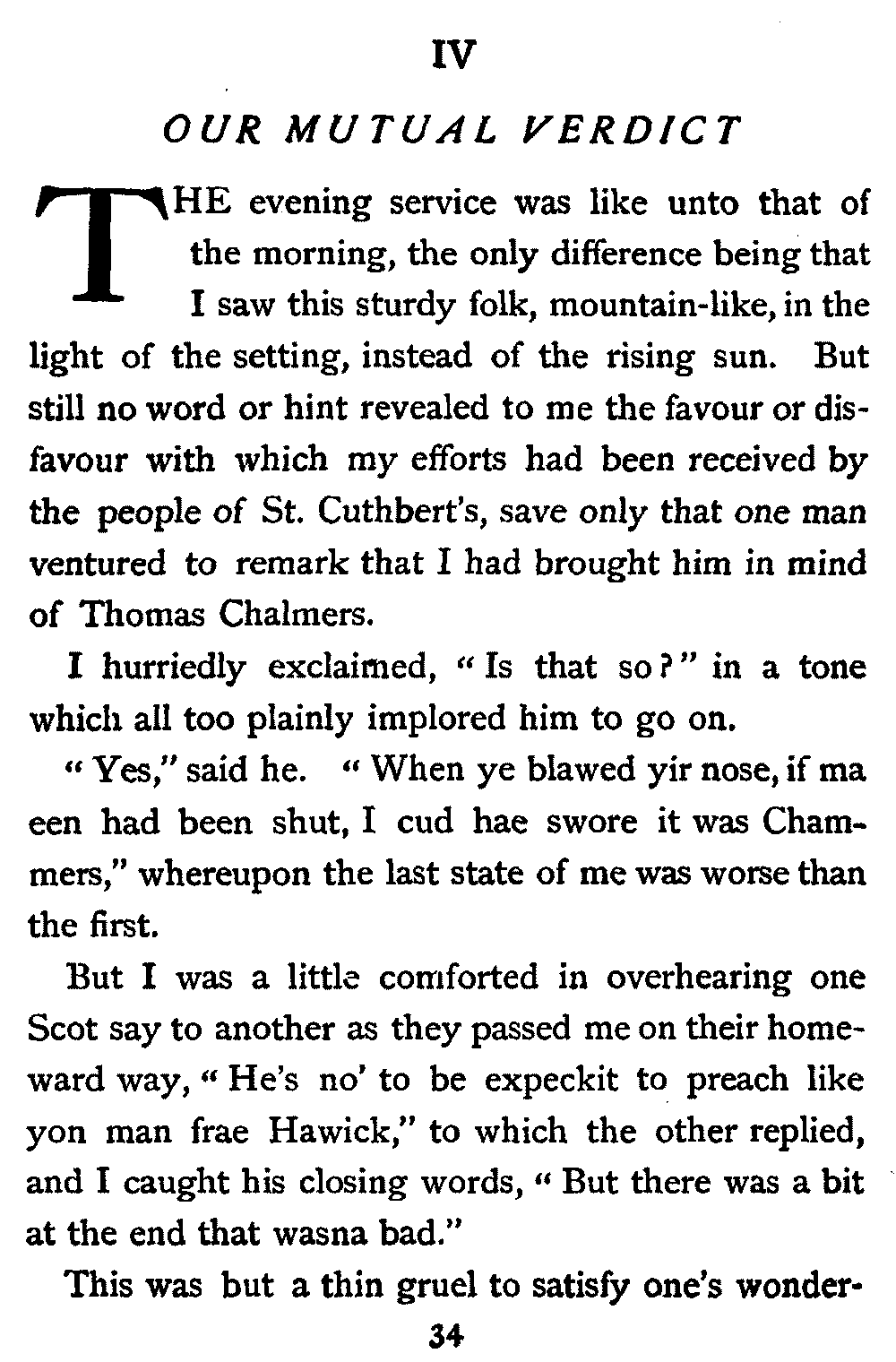 His next interrogation was launched with courteous composure: "Ye'll no' be the man wha's expeckit in St. Cuthbert's ower the Sabbath?"
