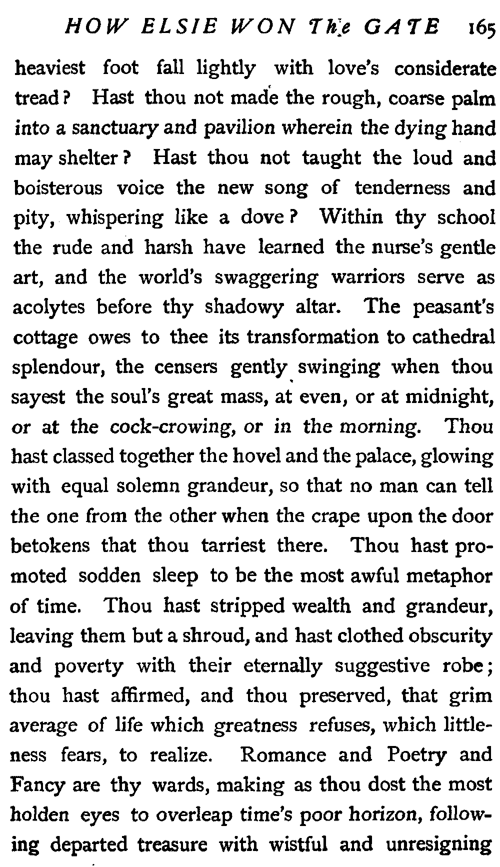 "Wait a moment," I said, "stay here a moment,"—for I knew the ways of love.