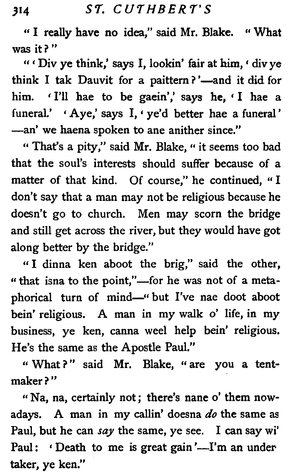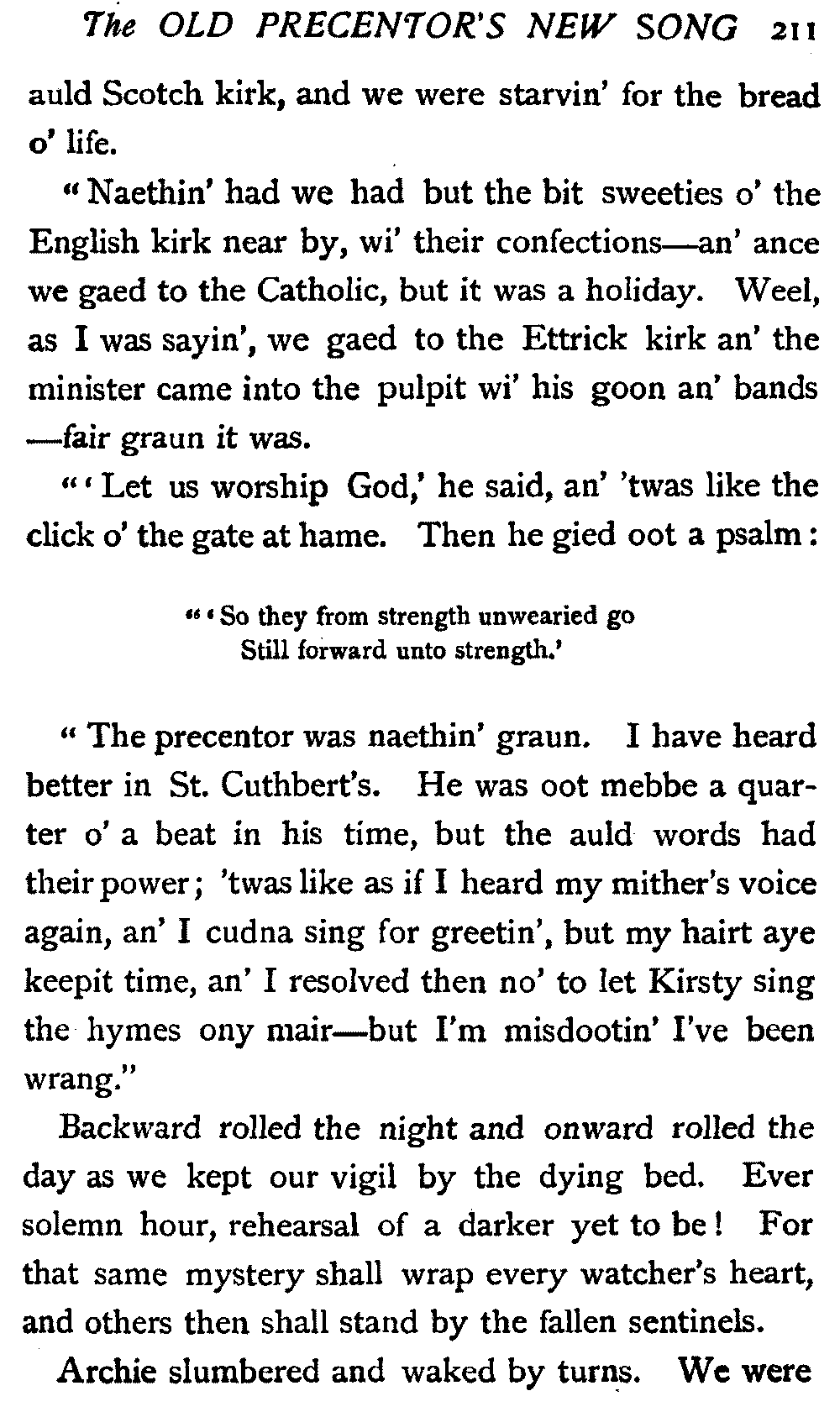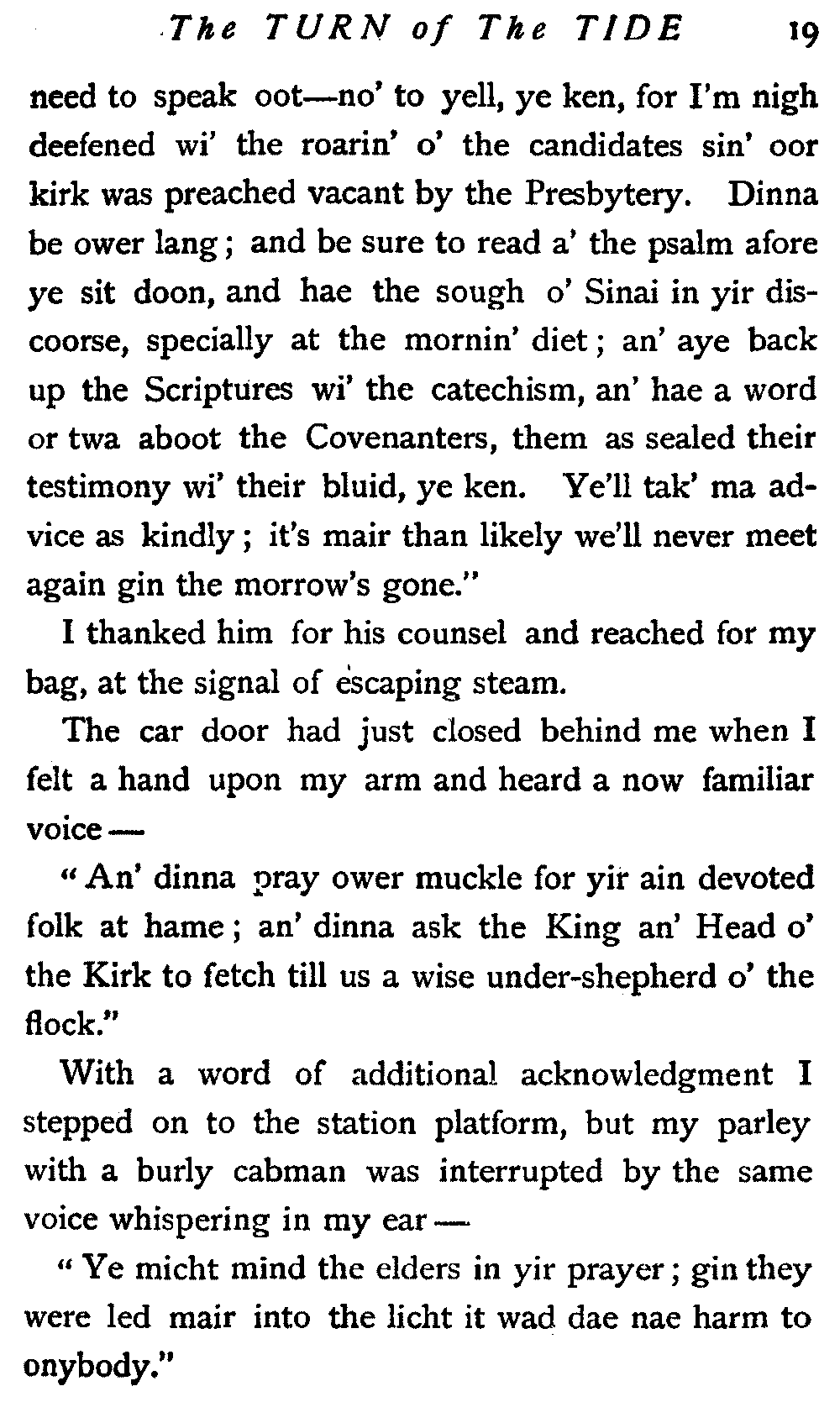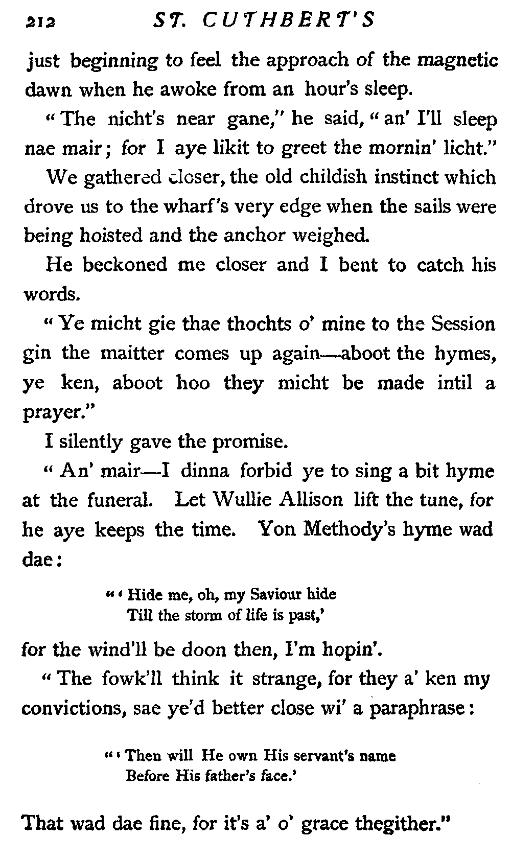 "And I'm no' the precentor; I'm no' the man, ye ken, that lifts the tune."[17]
