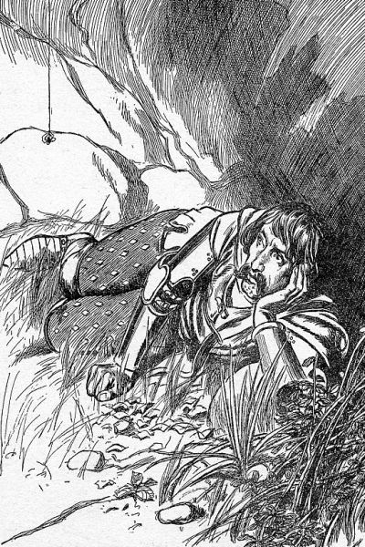 But alas! he went out to die. In one battle, a small band of the English bravely attacked a large army of their enemies. The horse which Sidney was riding was killed under him, and as he mounted another, he was shot in the leg, and his thigh-bone was broken. The horse took fright and galloped[Pg 71] away from the fight, but its wounded and bleeding rider held to his seat, and when he reached a place of safety was lifted from his horse, and gently laid upon the ground. He was faint from loss of blood, and in great pain, and his throat was parched with thirst.