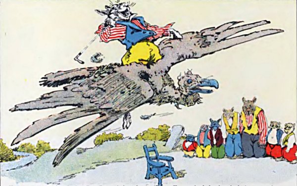 “De creeturs had der meetin’-place, whar dey could all set ’roun’ an’ talk de kind er politics dey had, des like folks does at de cross-roads grocery. One day, whiles dey wuz all settin’ an’ squottin’ ’roun’, jowerin’ an’ confabbin’, Brer Rabbit, he up ’n’ say, sezee, dat ol’ Mammy-Bammy-Big-Money tol’ his great gran’daddy dat dar wuz a mighty big an’ fat gol’ mine in deze parts, an’ he say dat he wouldn’t be ’tall ’stonished ef ’twant some’rs close ter Brer B’ar’s house. Brer B’ar, he growled, he did, an’ say dat de gol’ mine better not let him fin’ it, kaze atter he got done wid it, dey won’t be no gol’ mine dar.