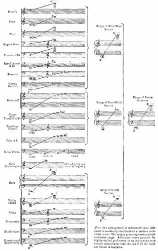 Table—Of orchestral instruments, 107.