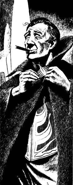 I pulled on a fancy sports cap, buckled the cape up tight, and was ready to go. The luggage was all booby-trapped and could defend itself. Guns, gas, poison needles, the usual sort of thing. In the last resort it would blow itself up. The M-3 went down by a freight elevator. I used a back stairs and we met in the street.