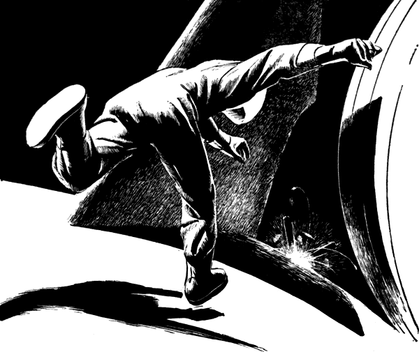 I kept the gun on him and neither of us moved while the Navy ships pulled up and their boots stamped outside. I had captured my battleship and the raids were over. And I couldn't be blamed if the girl had slipped away. If she evaded the Navy ships, that was their fault, not mine.
