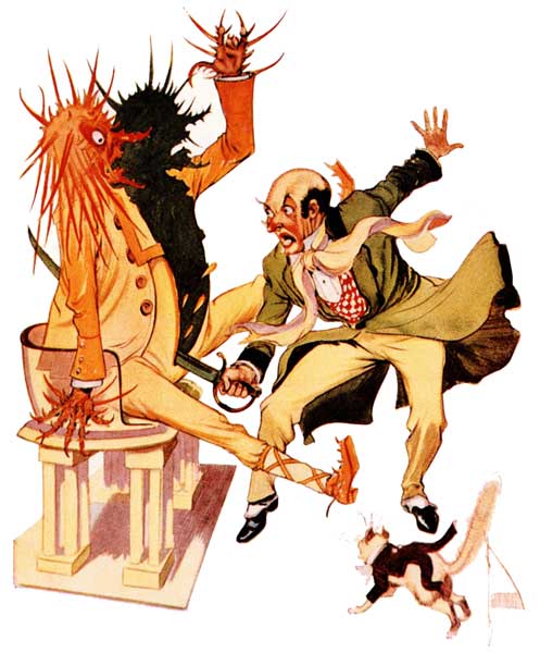 And now, at a signal from Ozma, the Woggle-Bug arose and addressed the jury. His tone was pompous and he strutted up and down in an absurd attempt to appear dignified.