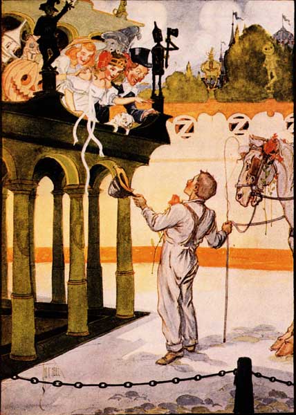 "This is a fine country, and I like all the people that live in it," he told Dorothy. "But the fact is, Jim and I don't seem to fit into a fairyland, and the old horse has been begging me to go home again ever since he lost the race. So, if you can find a way to fix it, we'll be much obliged to you."