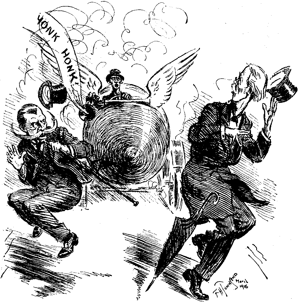 Tuesday, March 14th.—Ministers as they passed through Palace Yard on their way to the House shuddered as they observed a long, black, wicked-looking motor-car, shaped like a torpedo. In this machine Mr. Pemberton-Billing, the new Air-Member for East Herts, had done most of his electioneering. Now he had arrived to take his seat and, rumour said, to make his maiden speech. Would the Front Bench survive it?