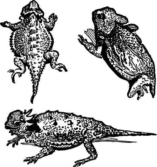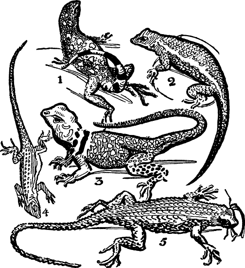 These are a low grade of lizards that live underground like worms. The Worm Lizard, found in Florida, is scarcely[159] any larger around than an earthworm. It is able to move backward or forward in the earth, the end of the tail being shaped similar to the head.