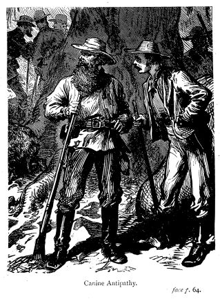 After a few moments, he turns his back on the corpse, calling Brasfort away from it. The dog yet shows hostility; and, if permitted, would mutilate the lifeless remains. Its fierce canine instinct has no generous impulse, and is only restrained by scolding and threats.