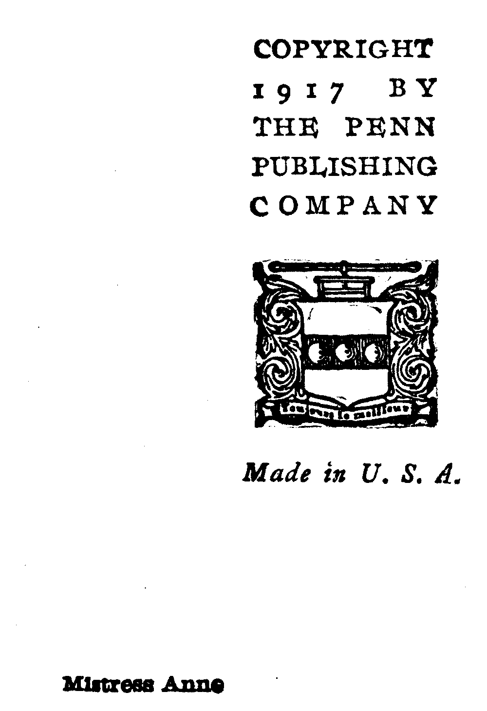 [19] Anne had not spoken, but as she lifted the lantern from its nail and held it high, Richard Brooks was aware that this was the same girl whom he had glimpsed from the train. He had noted then her slenderness of outline, the grace and freedom of her pose; at closer range he saw her delicate smallness; the bloom on her cheek; the dusky softness of her hair; the length of her lashes; the sapphire deeps of her eyes. Yet it was not these charms which arrested his attention; it was, rather, a certain swift thought of her as superior to her surroundings.
