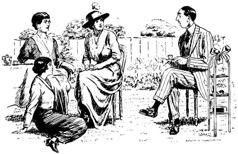 (The modern girl, according to a daily paper, is not to be won by love-making. She prefers a cheerful and amusing companion.)