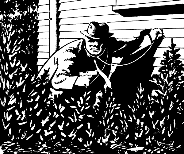 From an inner pocket he brought the spy device he had acquired from Derek Steven's Rube Goldberg department. It looked and was supposed to look considerably like a doctor's stethoscope. He placed it to his ears, pressed the other end to the wall of the house.