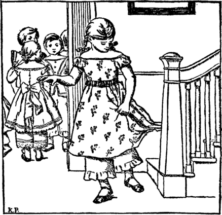 So with her frock all torn, into The room she had to go, And all the children wondering stared To see her looking so; Then when Jane played it caught her feet And almost made her fall; That shamed her so she ran away And tried to hide from all. |