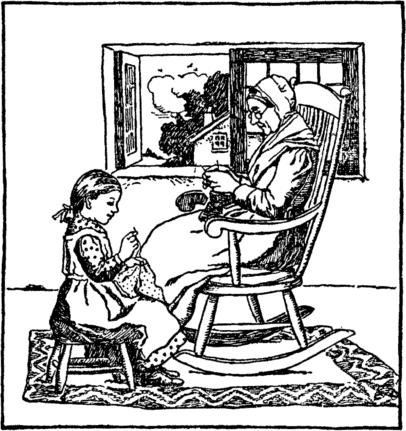 | When nurse at last was sent for her, How glad was little Jane; She almost thought she never wished To romp or play again. "Oh! grandmamma, dear grandmamma, Indeed, indeed," said she, "If now you'll teach me how to sew A thankful child I'll be." |