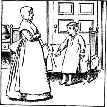 Some other child has now your suit, Because I thought, indeed, If you were going to lie in bed, Your clothes you would not need. But if you really wish to dress And go to school, see there, The little dress a year ago Your sister used to wear." |