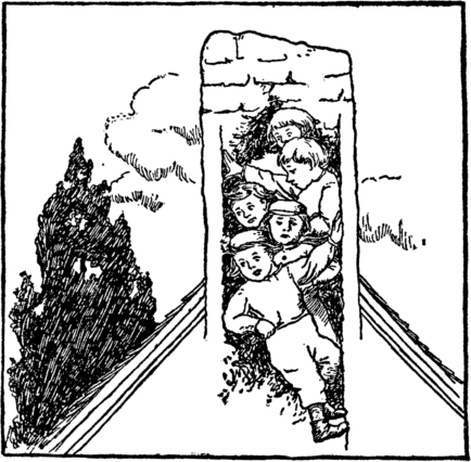 These small boys started off for school But loitered by the way, Until at last 'twas quite too late To go to school that day. Ah naughty, naughty, truant boys! But listen what befell! Close by a wicked ogress lived, Down in a lonesome dell. |