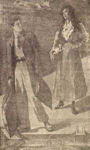 Something in the expression of the blue eyes above her made her own eyes droop. Then[Pg 283][Pg 282][Pg 281] suddenly she flushed and drew away her hand, which, all this time, had been lying in his two strong brown palms, for, as she looked down, her glance had chanced to fall upon the bunch of withered leaves which still clung in her belt.