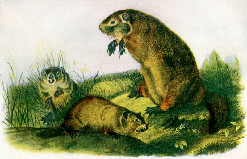 But after the novelty of the thing had worn off, the boy found he had incumbered himself with serious duties in assuming the position of foster-mother to this large family; so he gave them all away but one, the first one captured, which had outstripped all the others in growth. This soon became a very amusing pet, but he always protested when handled, and always objected to confinement. I should mention that the cat had a kitten about the age of the chuck, and, as she had more milk than the kitten could [p132] dispose of, the chuck, when we first got him, was often placed in the nest with the kitten, and was regarded by the cat as tenderly as her own, and allowed to nurse freely. Thus a friendship sprang up between the kitten and the woodchuck, which lasted as long as the latter lived. They would play together precisely like two kittens,—clinch and tumble about and roll upon the grass in a very amusing way. Finally the woodchuck took up his abode under the floor of the kitchen, and gradually relapsed into a half-wild state. He would permit no familiarities from any one save the kitten, but each day they would have a turn or two at their old games of rough-and-tumble. The chuck was now over half grown, and procured his own living. One day the dog, who had all along looked upon him with a jealous eye, encountered him too far from cover, and his career ended then and there.