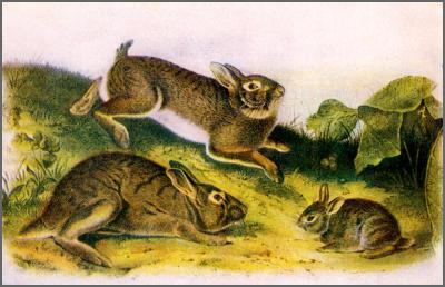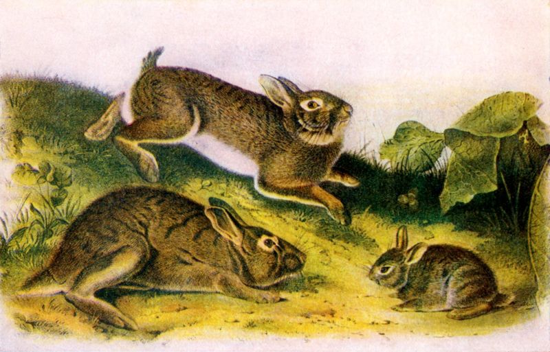 The rabbit has not much wit. Once, when a boy, I saw one that had been recently caught, liberated in an open field in the presence of a dog that was being held a few yards away. The poor thing lost all presence of mind, and was quickly caught by the clumsy dog.