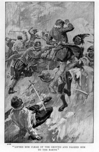 With a faint groan Roger fell, and Harry stumbled over his body, thus enabling the Spaniard to effect his escape.