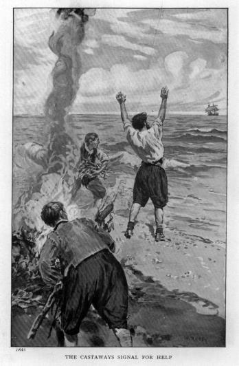 But Roger made no reply, lying perfectly still, with a stream of red slowly spreading from under his head and staining the white planking. Suddenly, from above sounded a harsh cry.
