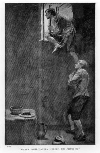 The two stools were then dragged to the window, and on these Roger mounted, whilst Harry handed up the knife with the silk tied to it.