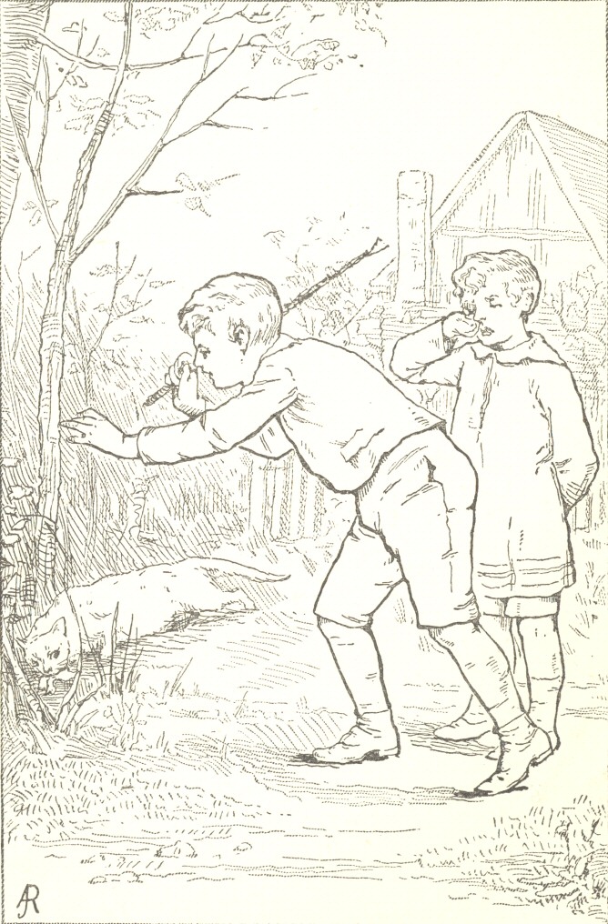 At last Aunt Esther put out her hand to touch them, when, whisk-frisk, out they went, and up the trees, chattering and laughing before she had time even to wink.