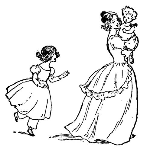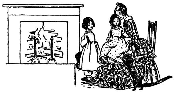 My parents had arrived late at night, and the trunk was unpacked with much ceremony the next morning. Under my mother's best new dresses was a long pasteboard box which she opened, smiling at our expectant faces. From it she drew the biggest, prettiest doll-baby we had ever seen, in a blue silk frock with a sash to match. She had real hair, curly and black as a coal, and round black eyes and a cherry-ripe mouth. I reached out both hands, and a cry of rapture rushed from my heart to my lips—an inarticulate gurgle of ineffable happiness.