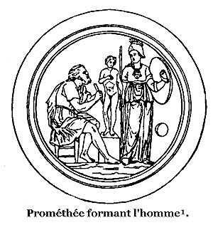 Note 8: (retour) La gravure placée en tête de ce chapitre, représente la scène de la tentation des premiers humains au jardin de 'Eden, d'après une peinture chrétienne des catacombes de Rome, empruntée au grand ouvrage de Perret.