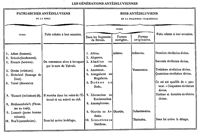 Note 2: (retour) Nous prenons ici le récit biblique tel qu'il nous est parvenu, sous sa forme définitive et complète, sans entrer dans les obscures et délicates questions de la date de cette rédaction définitive et des éléments antérieurs qui ont pu servir à sa formation. C'est au livre de notre histoire qui traitera des Hébreux, que nous nous réservons d'aborder ce problème, qu'il sérait impossible de laisser entièrement de côté dans l'état actuel de la science. Le système auquel s'arrête aujourd'hui l'école critique rationaliste (le dernier état de ses travaux peut être considéré comme résumé sous la forme la plus complète et la plus scientifique dans E. Schrader, Studien zur Kritik und Erhlärung der Biblischen Urgeschichte, Zurich, 1863, et A. Kayser, Das vorexilische Buch der Urgeschichte Israels und seine Erweiterungen, Strasbourg, 1874) admet dans le style actuel de la Genèse la fusion de deux livrés antérieurs, qualifiés d'élohiste et de jéhoviste, d'après la différence du nom qui sert à désigner Dieu dans l'un et dans l'autre, et, par dessus ces deux documents reproduits textuellement, le travail d'un dernier rédacteur qui les a combinés. Bornons-nous à remarquer que ce système lui-même, aussi bien que celui qui a été inauguré par Richard Simon, et qui voit dans la Genèse une collection de fragments traditionnels coordonnés par Moïse ou par tout autre, n'a rien en soi de contradictoire avec le dogme orthodoxe de l'inspiration divine du livre. L'Église a toujours admis que son auteur avait pu mettre en oeuvre, tout en étant guidé par une lumière surnaturelle, des documents antérieurs à lui. Mais dans l'exposé que nous avons à faire des données de la Bible sur les premiers âges, et dans les recherches comparatives auxquelles elles nous donneront lieu, cette distinction des anciennes rédactions importe peu. Qu'elle ait été rédigée en une fois ou à l'aide de la combinaison de récits parallèles qui se complétaient les uns les autres, la tradition biblique est une dans son ensemble et dans son esprit, et la comparaison que l'on peut en faire aujourd'hui avec l'enchaînement que révèlent les lambeaux de la tradition génésiaque de la Chaldée, prouve surabondamment que la construction du dernier rédacteur n'a rien d'artificiel et de forcé. Il est conforme au véritable esprit de la science, aussi bien qu'à l'orthodoxie religieuse, de l'envisager dans sa suite.